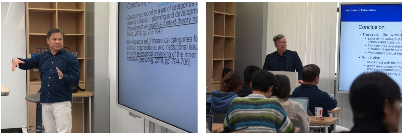 On the afternoon of November 16, Professor Deng Zongyi, the professor at the School of Education, University College London and executive editor of the Journal of Curriculum Studies, once again guested at Huaxia Curriculum Forum of ICI. He had an academic conversation with Professor Cui Yunhuo, the ICI director, on "Crisis and Solution for Theoretical Development of Contemporary Curriculum". The forum was hosted by ICI Professor Wu Gangping. An Guiqing, Chen Shuangye, Shi Yuchen, Yang Xiaozhe, Zhou Wenye and other teachers from the ICI attended the forum. More than 60 teachers and students from the Department of Education participated in the discussion and exchange.
