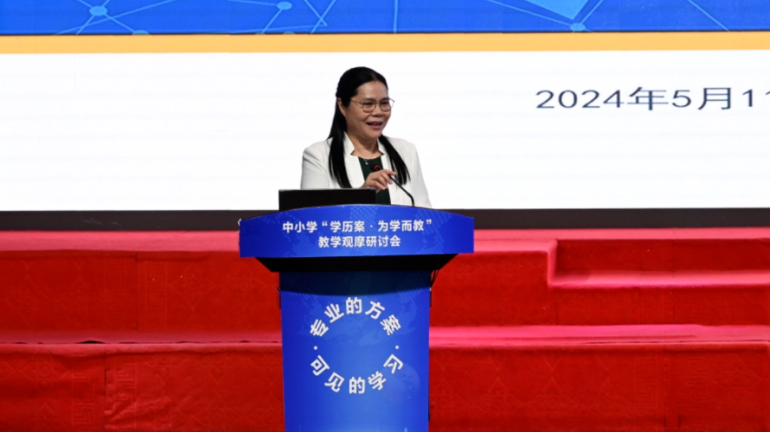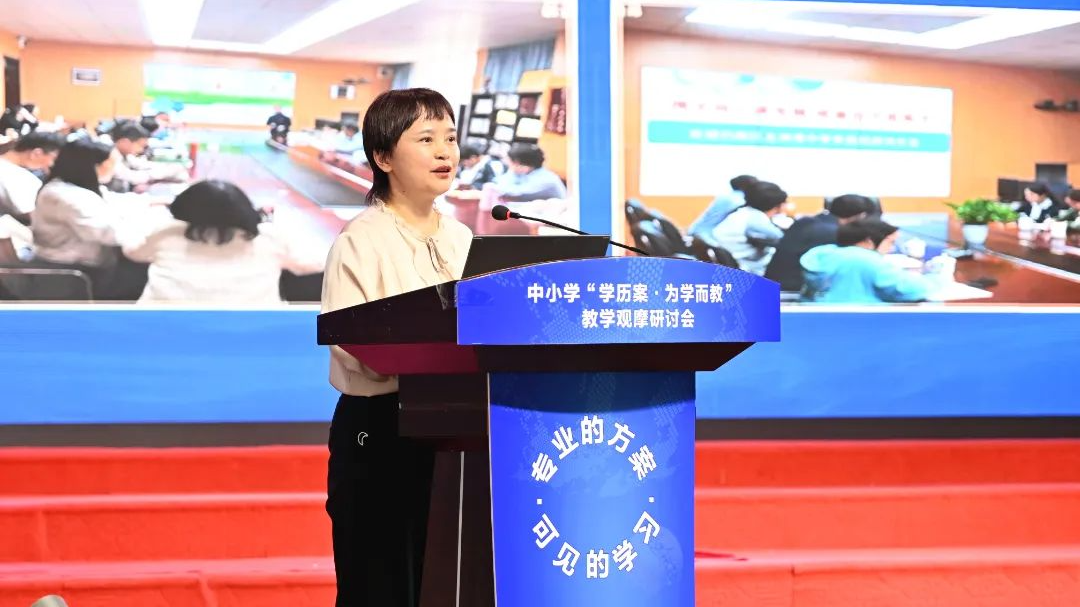 Liu Lianyin, director of the Primary Education Research Office of Wenjiang District Educational Science Research Institute of Chengdu, shared her experience in Xue Li An research and practice