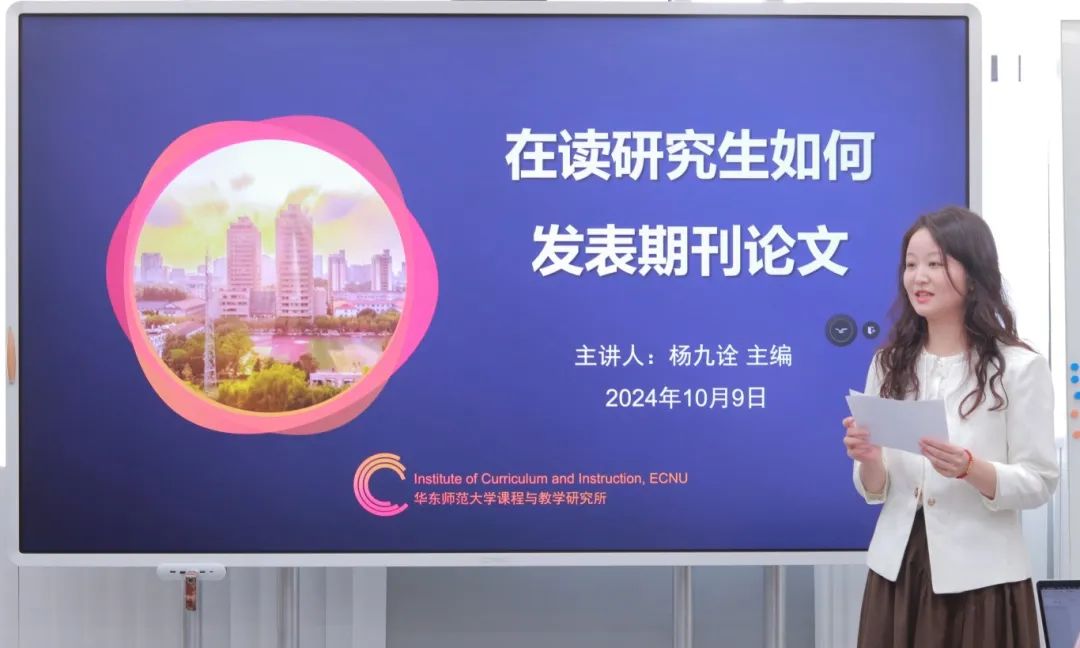 In order to provide learning support for the academic development of graduate students, on the afternoon of October 9, the curriculum department invited Mr. Yang Jiuquan, the editor-in-chief and editor of the core journal "Journal of East China Normal University (Educational Science Edition)", and the researcher of the curriculum department, to give a lecture entitled "Writing and Publishing: Journal Institutional Norms and Problem Awareness of Papers". The lecture was hosted by Liu Chenlu, a doctoral student of the 2024 class, and teachers and students of the curriculum department participated in the study.